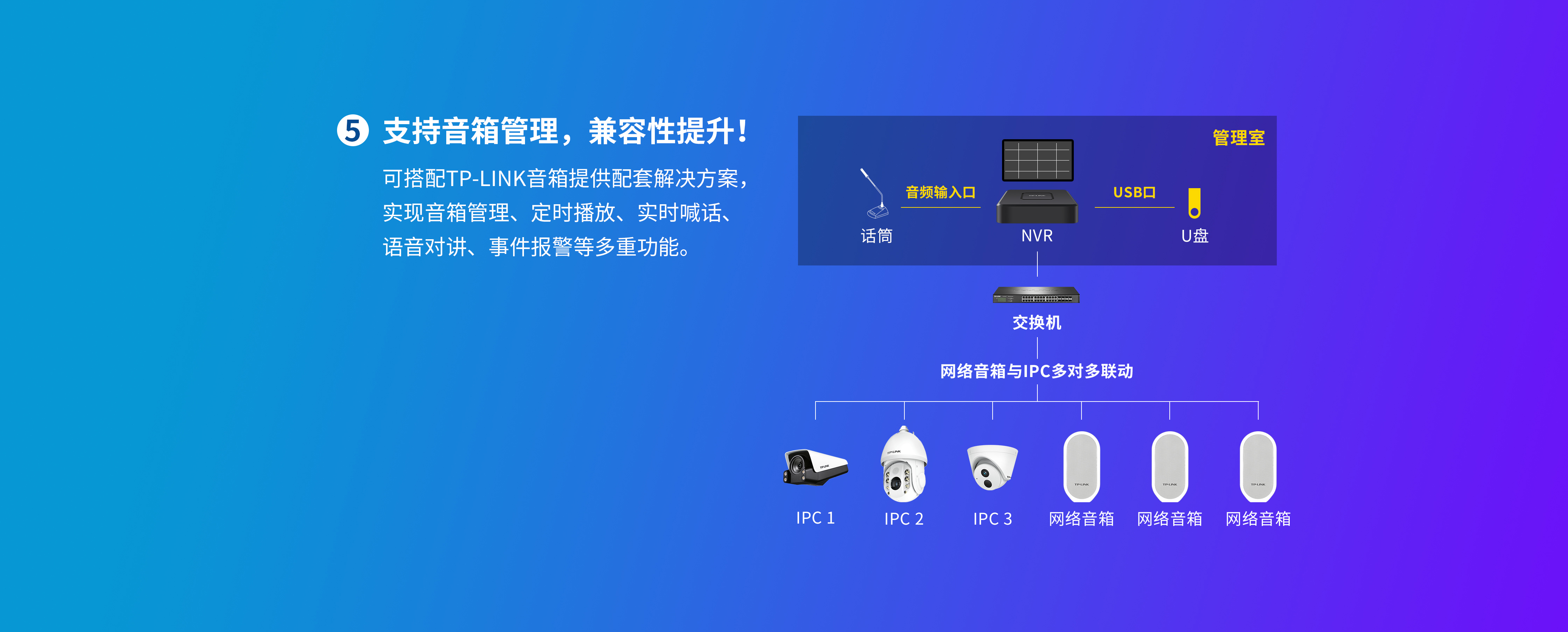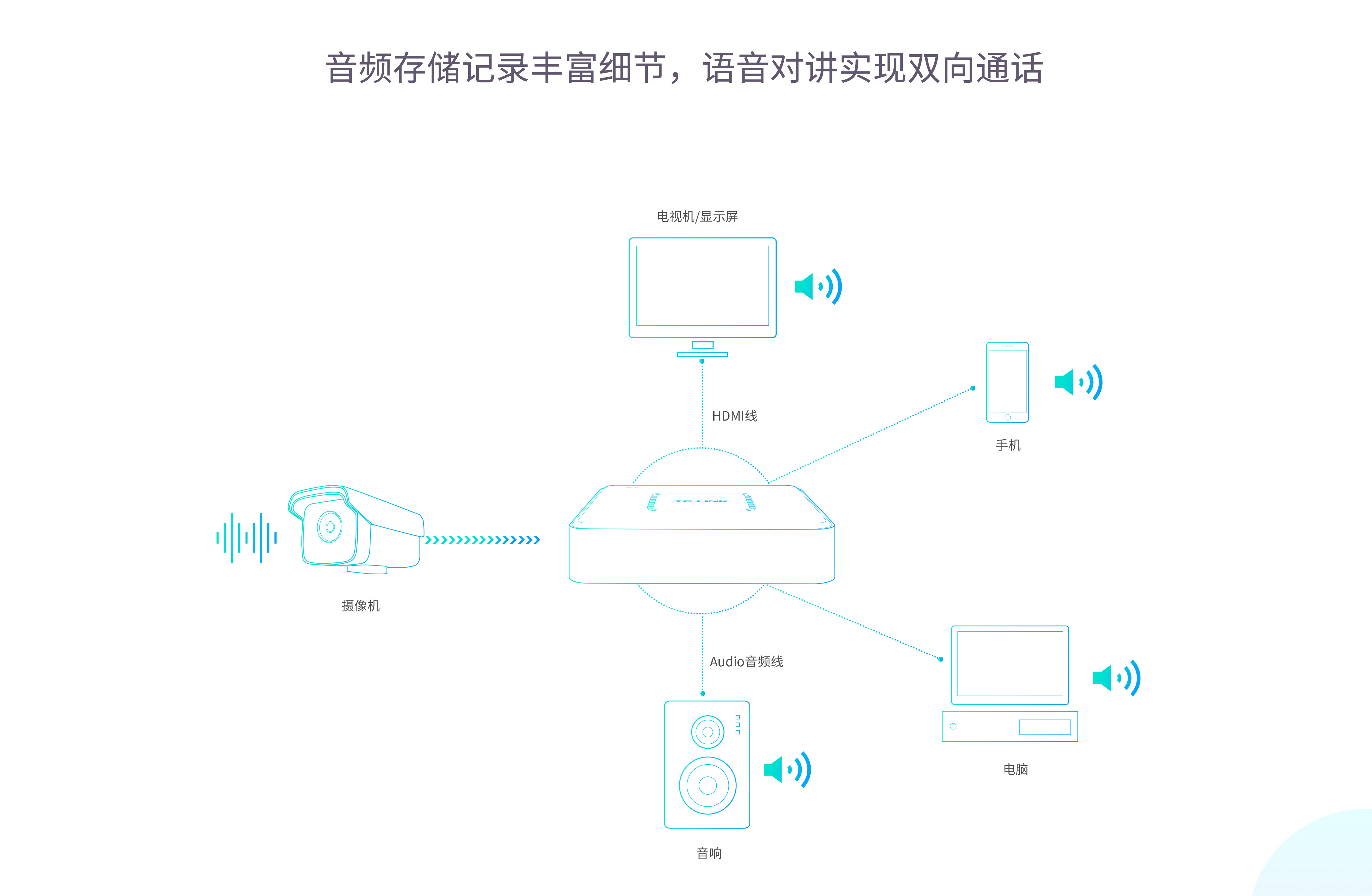 支持标准G.711A/U音频协议,兼容市面上大部分音频IPC,同步解码和存储音视频画面。可