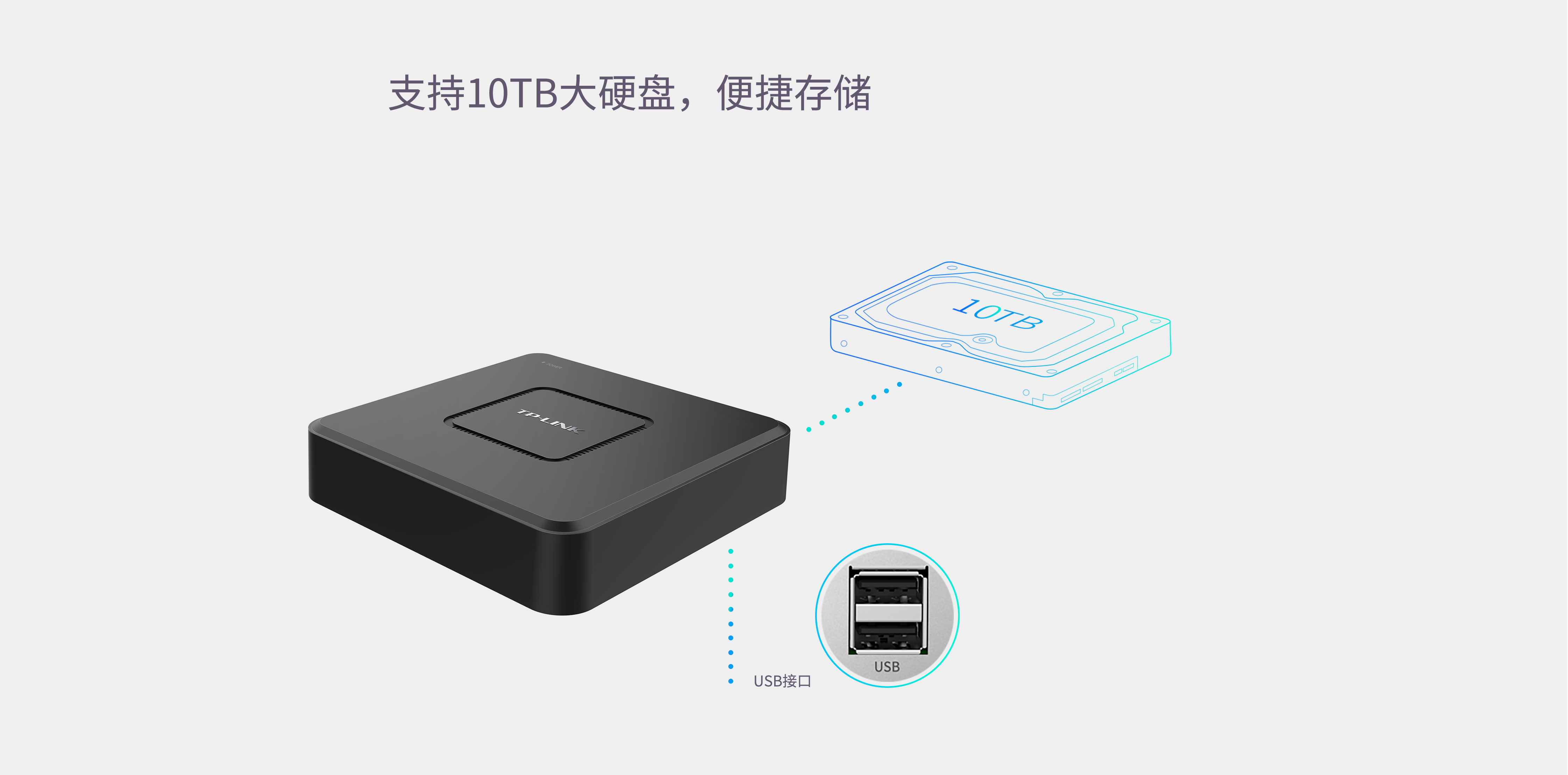 提供SATA接口,可支持高达10TB硬盘存储;提供USB接口, 可