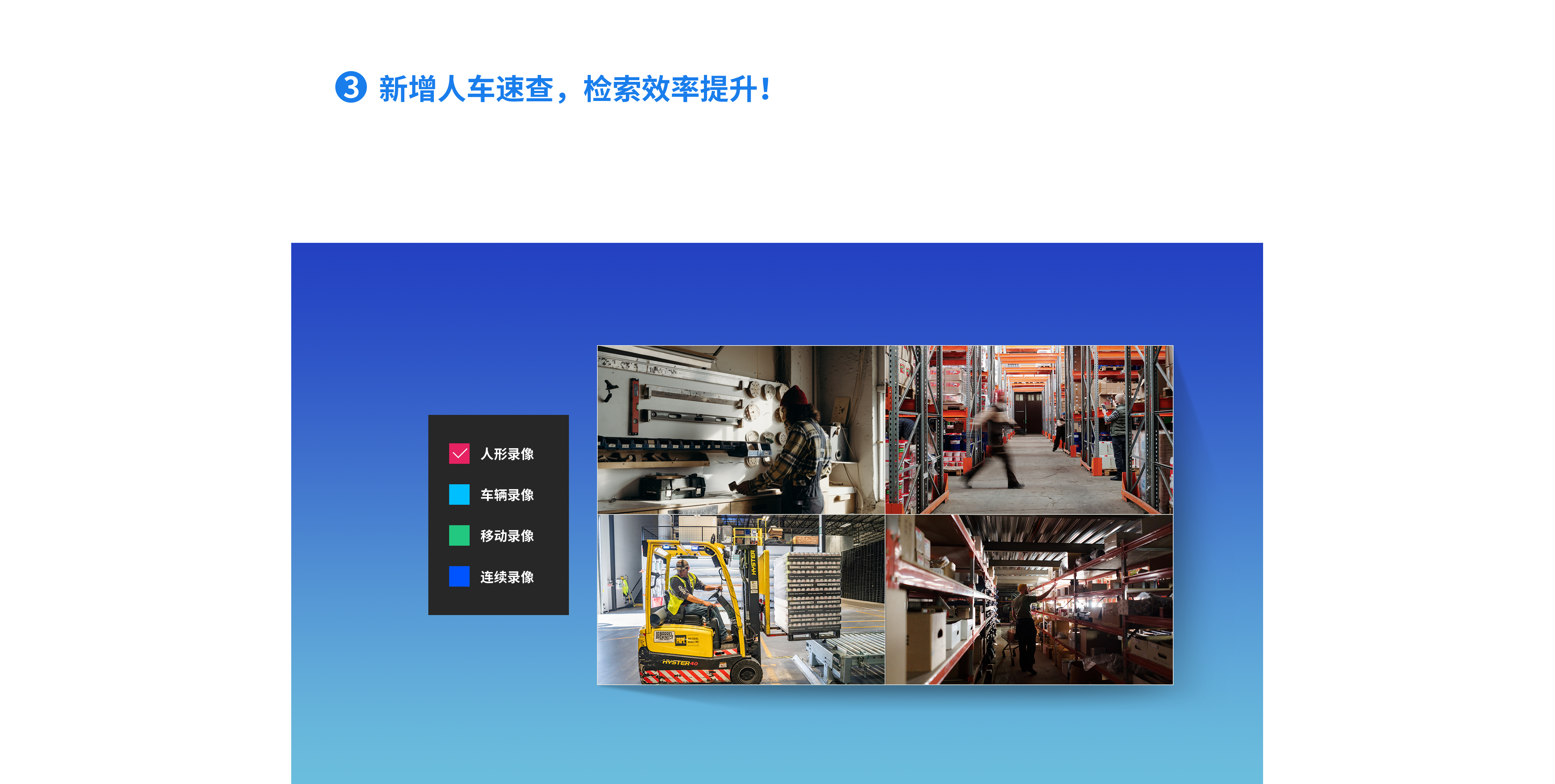 回放录像时,可快速选择人车录像进行查看,极大提高检索效率。
