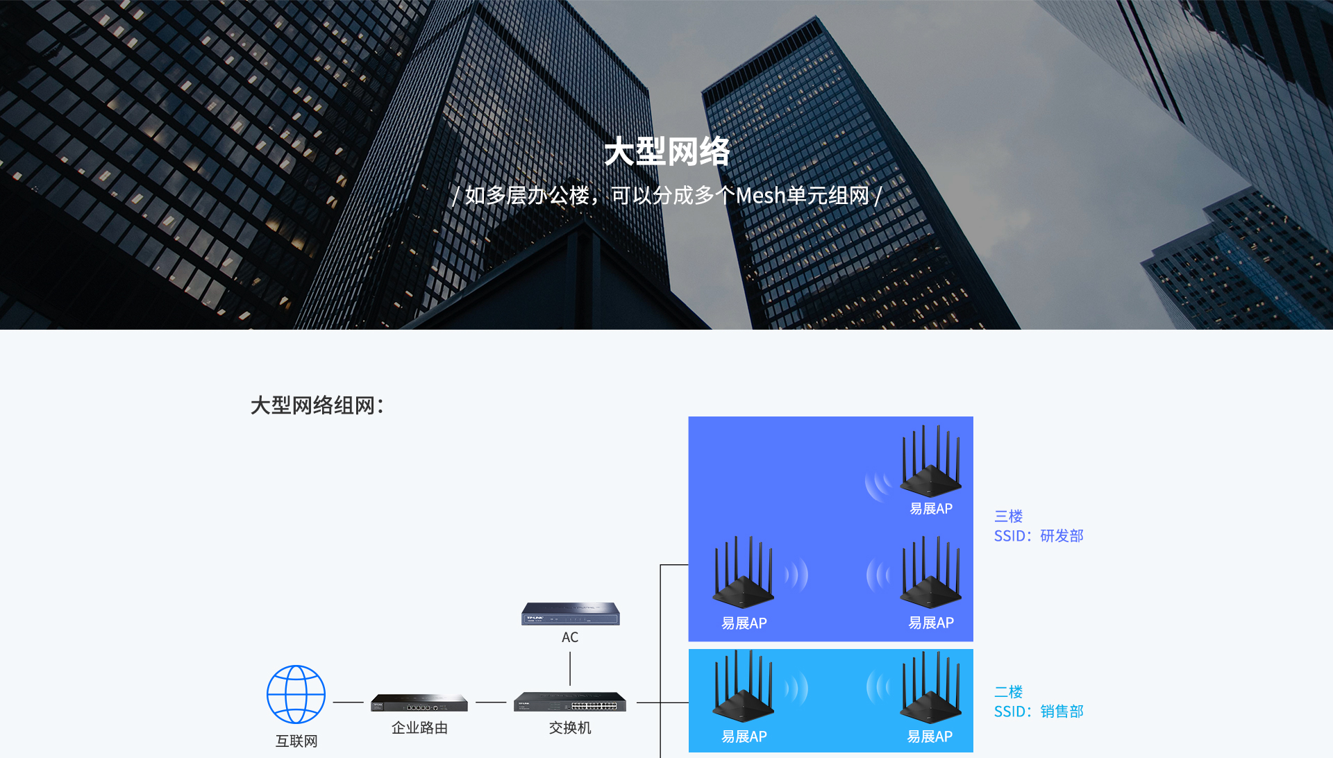 TP-LINK“易展”系列AP产品颠覆传统AP复杂的布线方式,通过TP-LINK Mesh