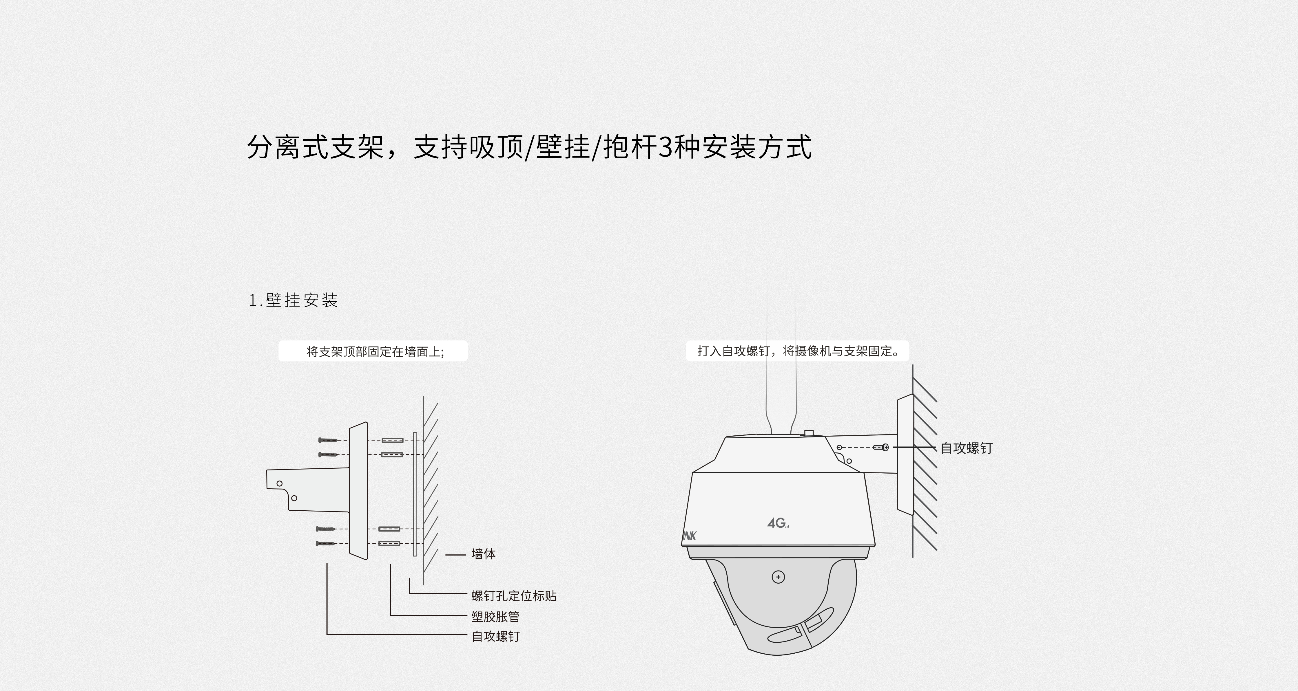 采用吸顶/壁挂/抱杆3种安装方式,可在家居/商铺/工程等多种场景中便捷安装。