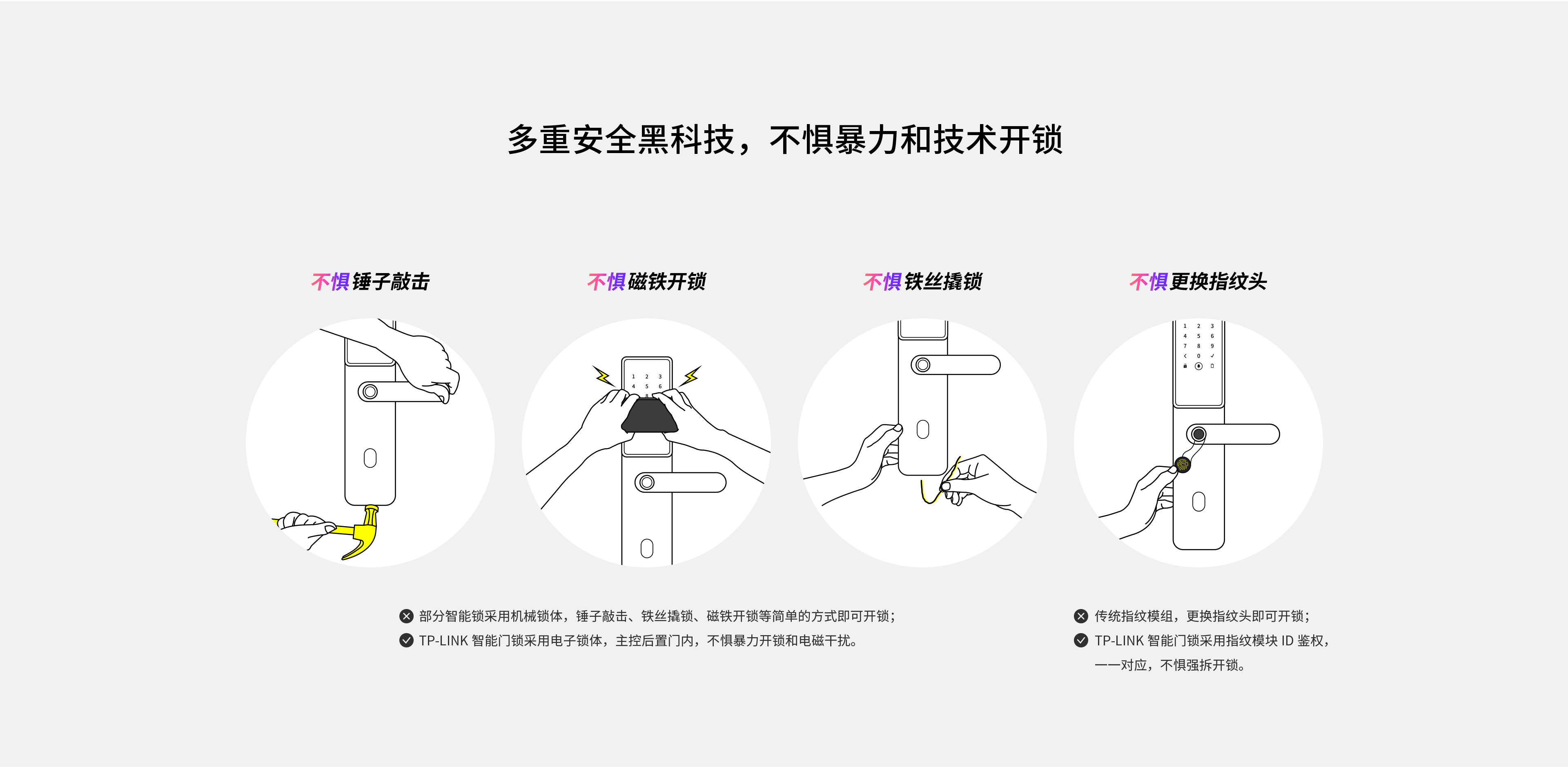 门锁与家中网络易展连接,一键下发配置,拒绝繁琐设置。改密回连,路由器更改