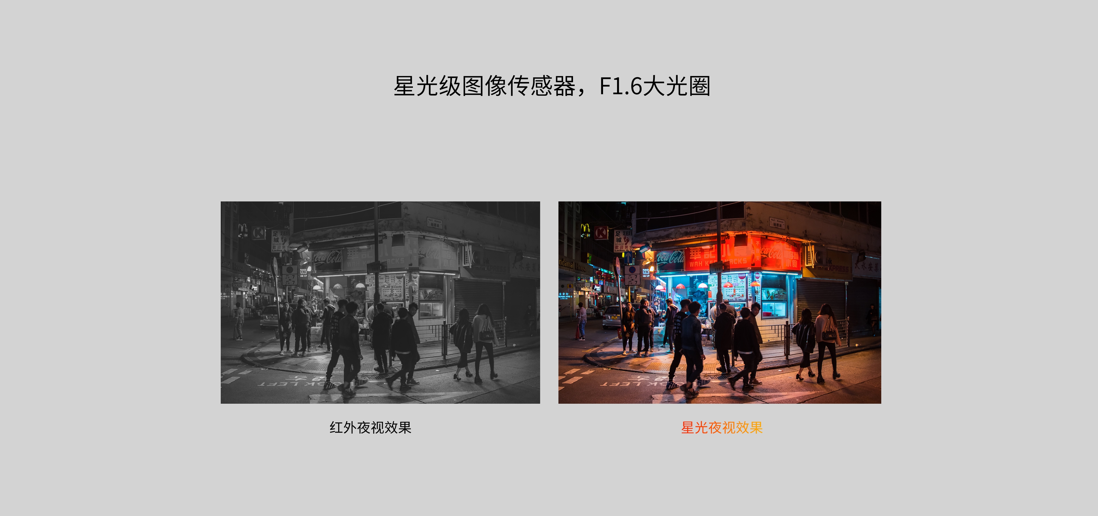 星光级图像传感器,加持F1.6大光圈,相对普通摄像机进光量大幅提升,