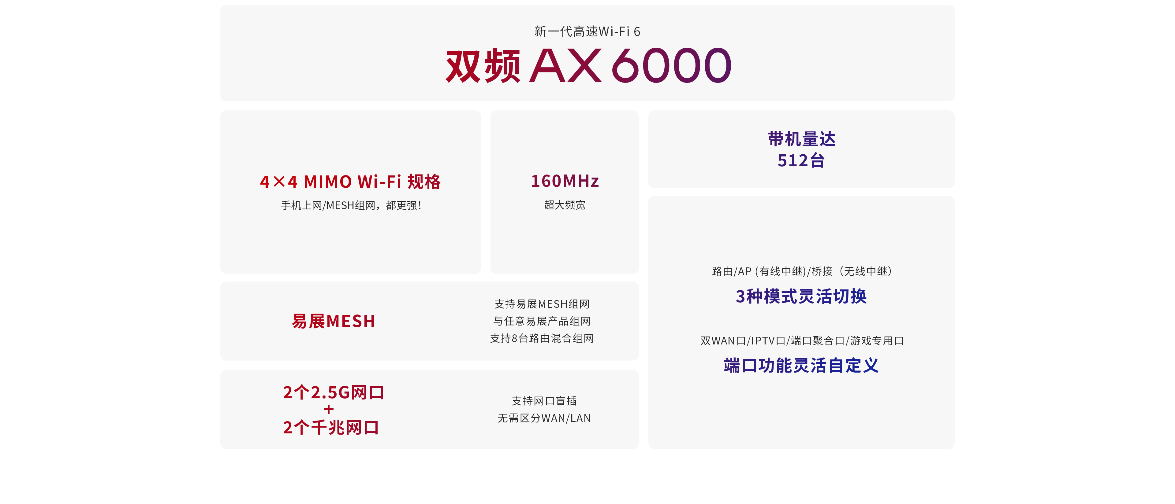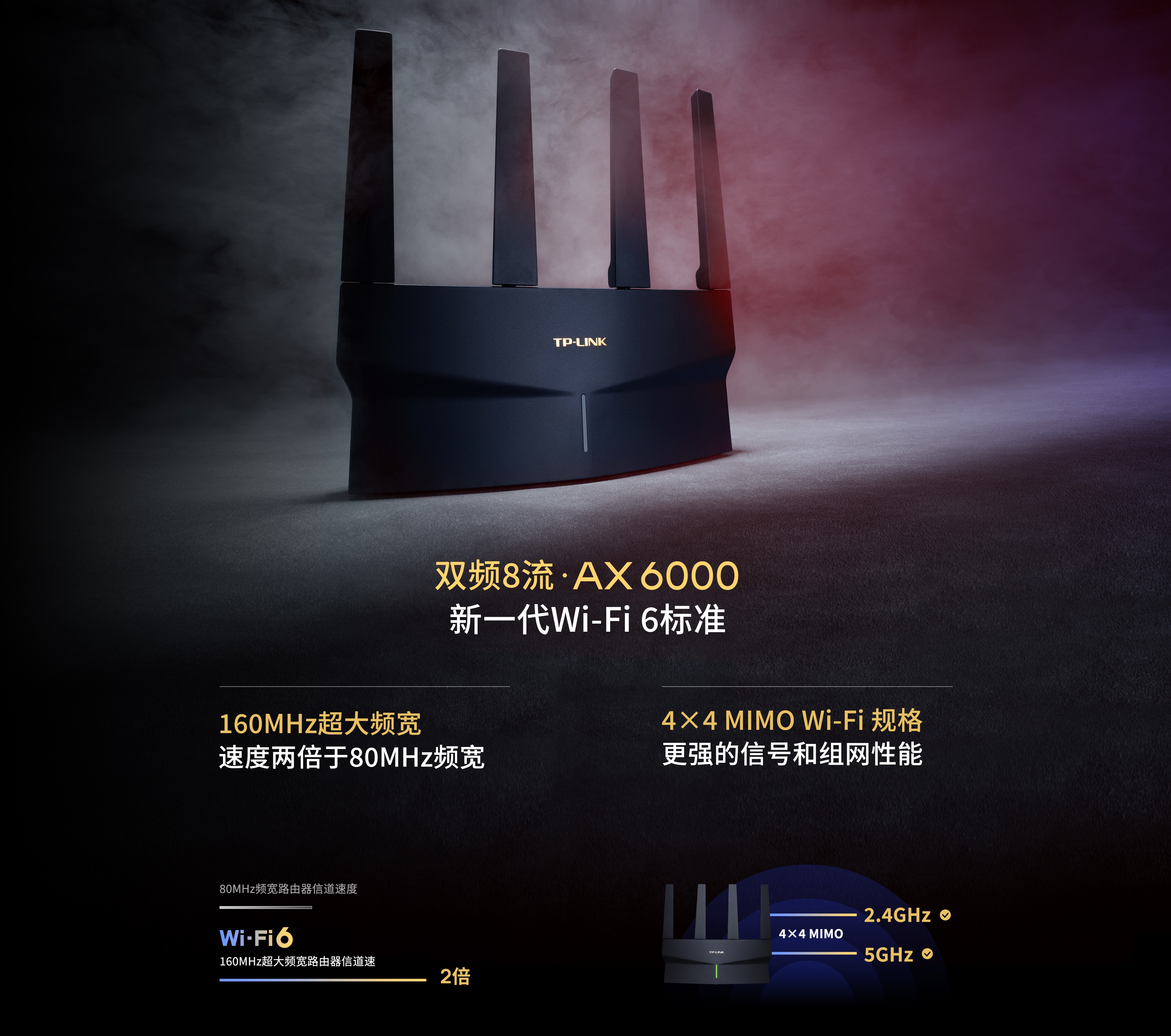 2.4GHz和5GHz均支持4X4 MIMO Wi-Fi 规格,