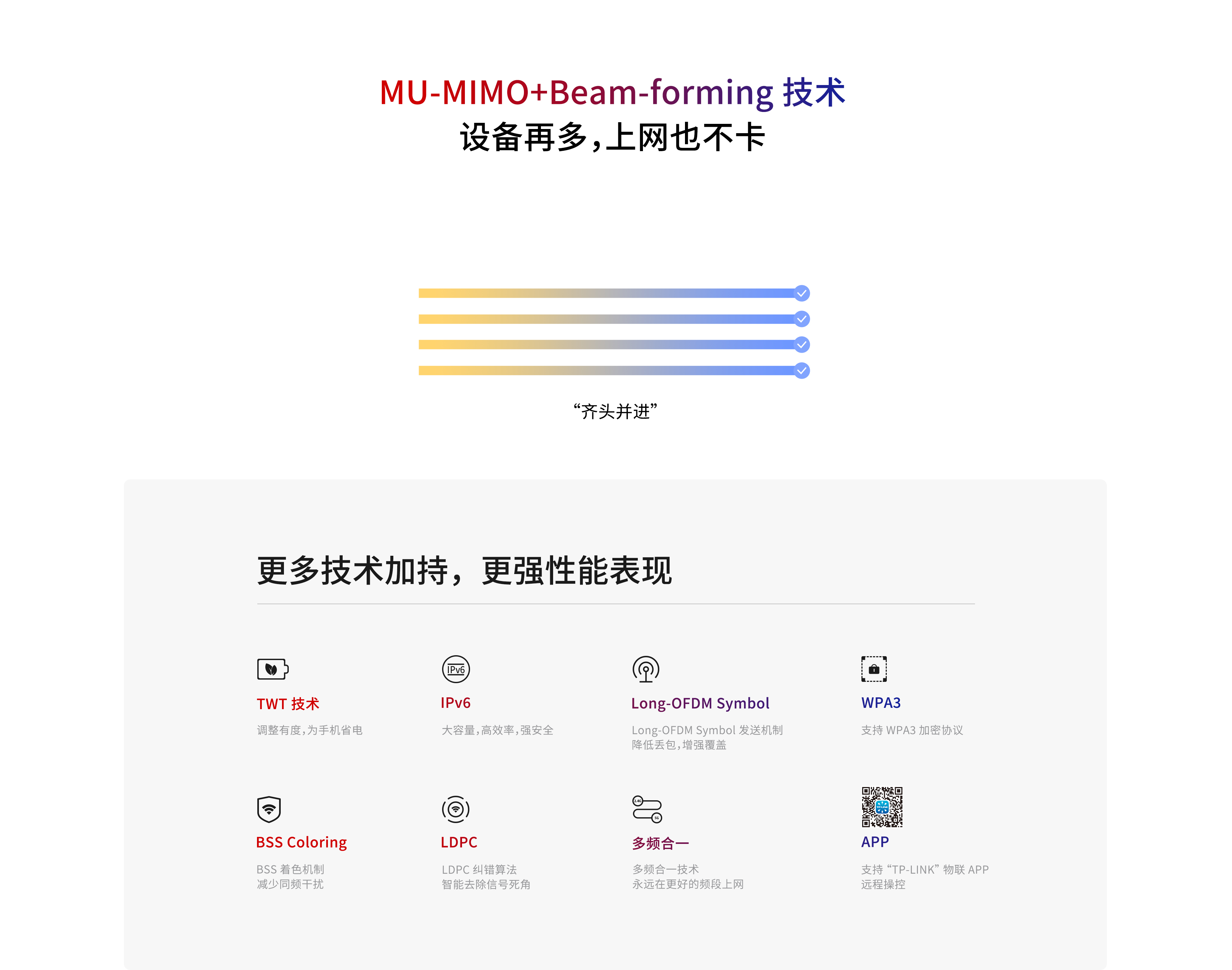 变成高效率的“齐头并进”。配合波束成型(Beam-forming)技术,自动检测手机、Pad、电脑等终端设备在网络中的位置,