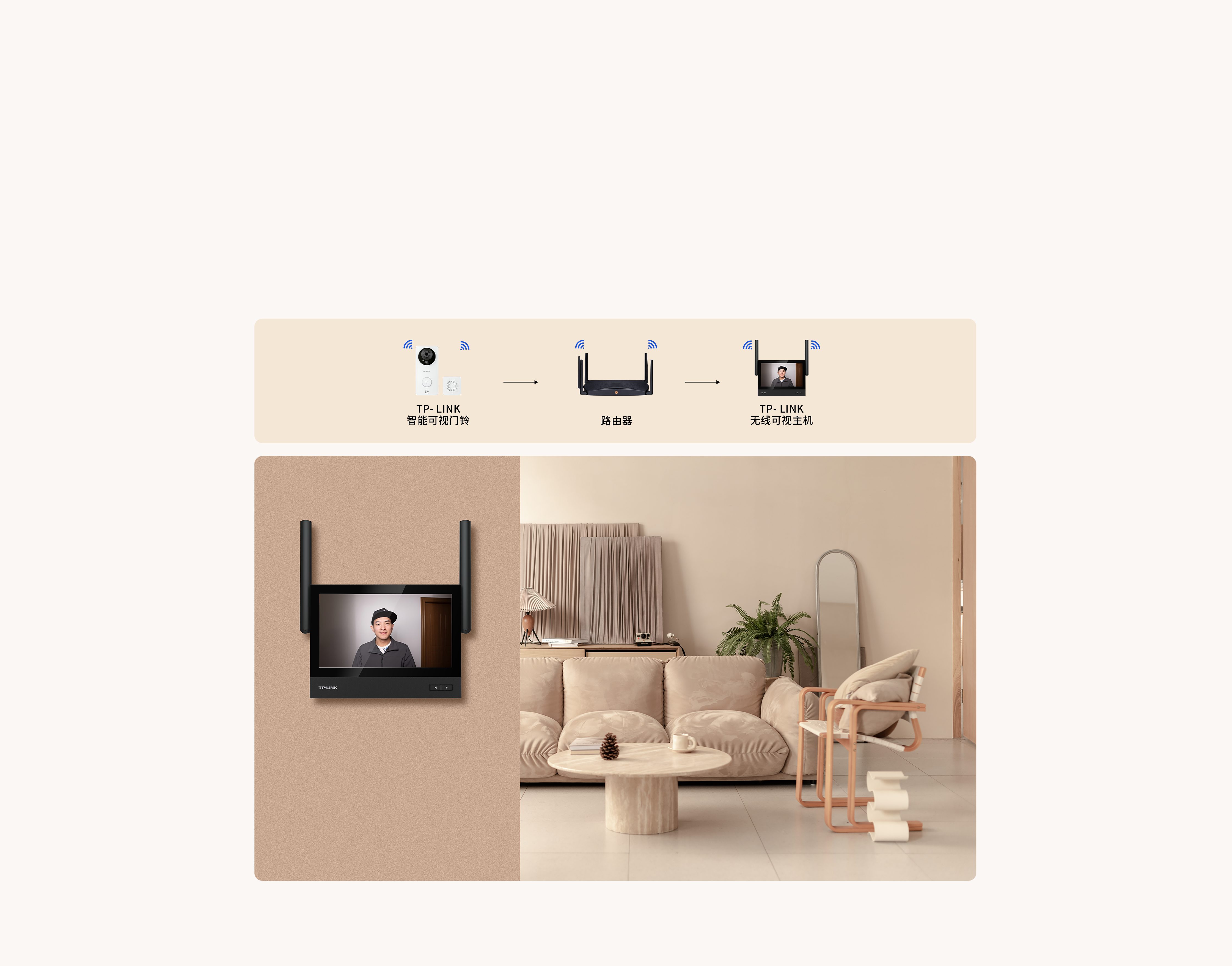TP-LINK智能门铃除了可以通过APP远程查看外,还可以搭配TP-LINK无线可视主机,