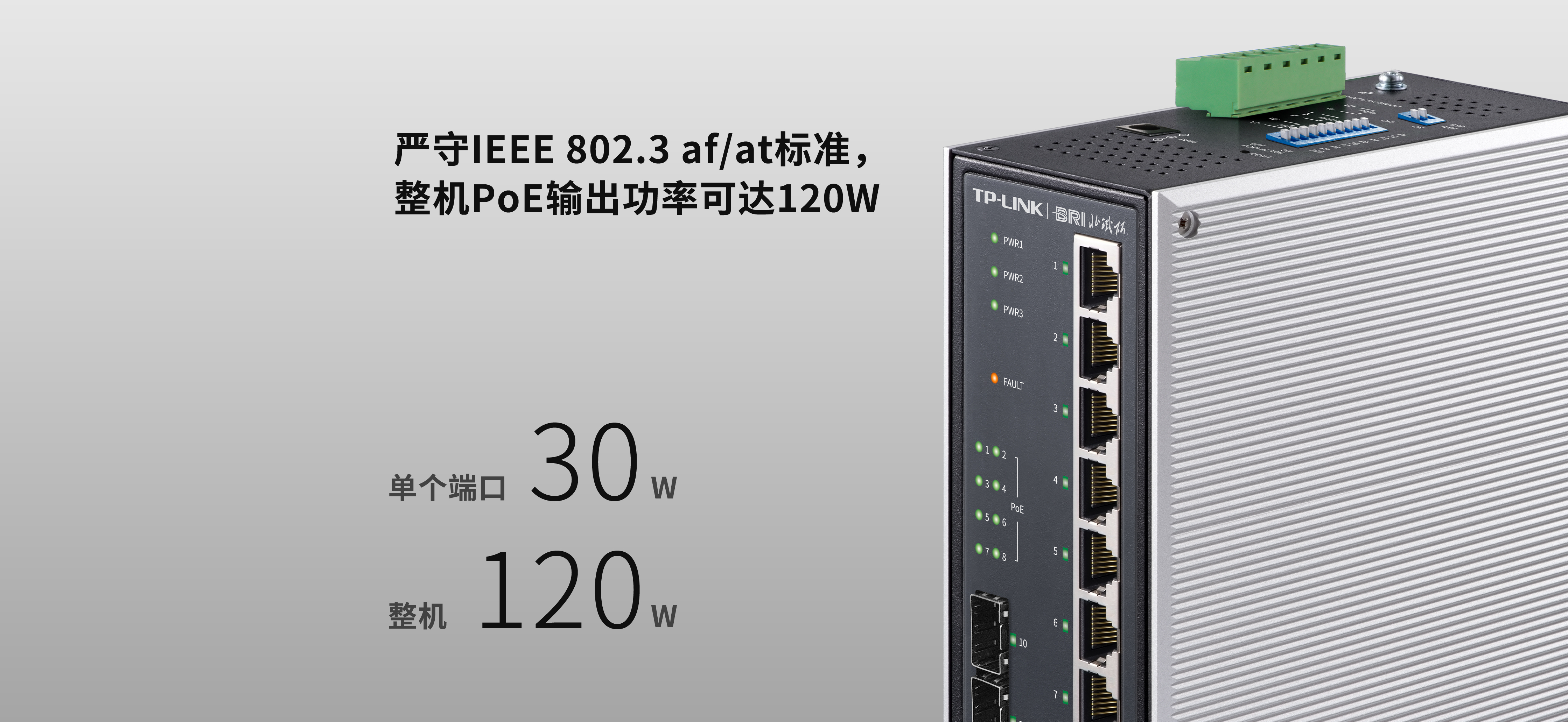 严守IEEE 802.3af/at标准,单端口供电可达30W,整