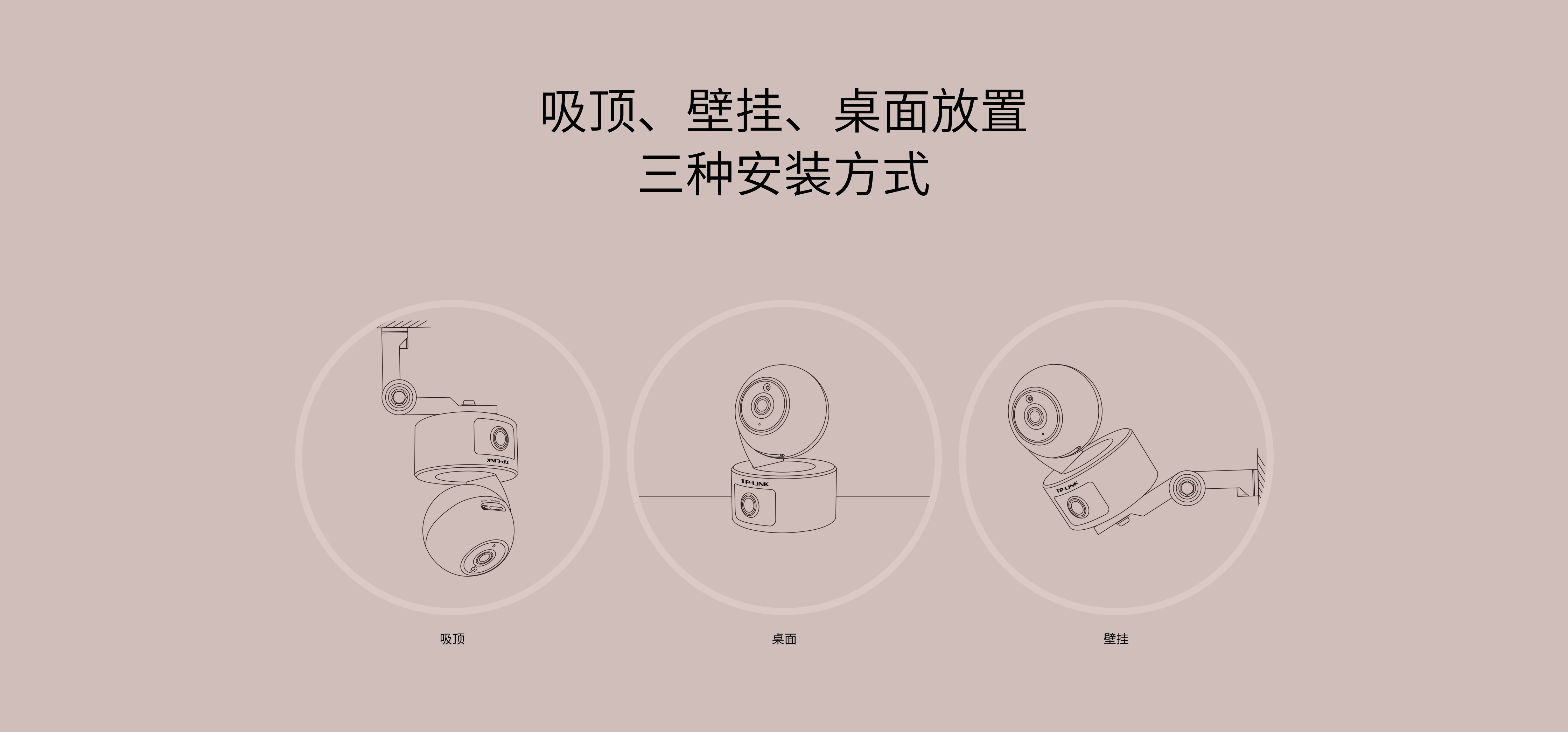 可直接放置于桌面,也可搭配上墙支架进行壁挂和吸顶安装。
