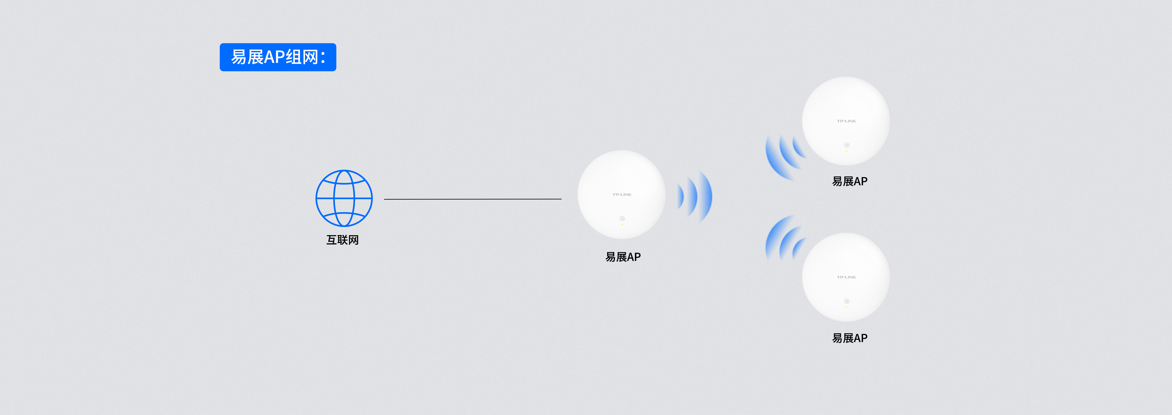 技术,无需布线,可实现最多8台“易展”AP一键无线互联。仅需简单设置单台