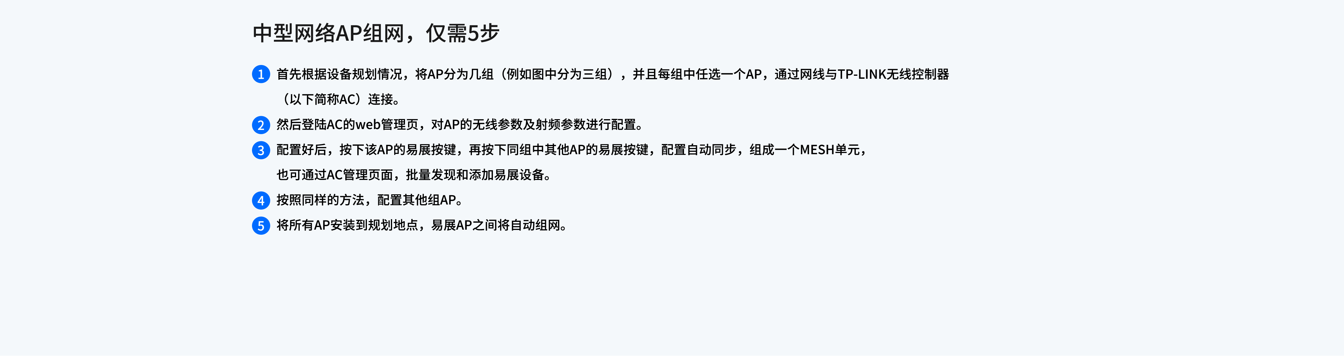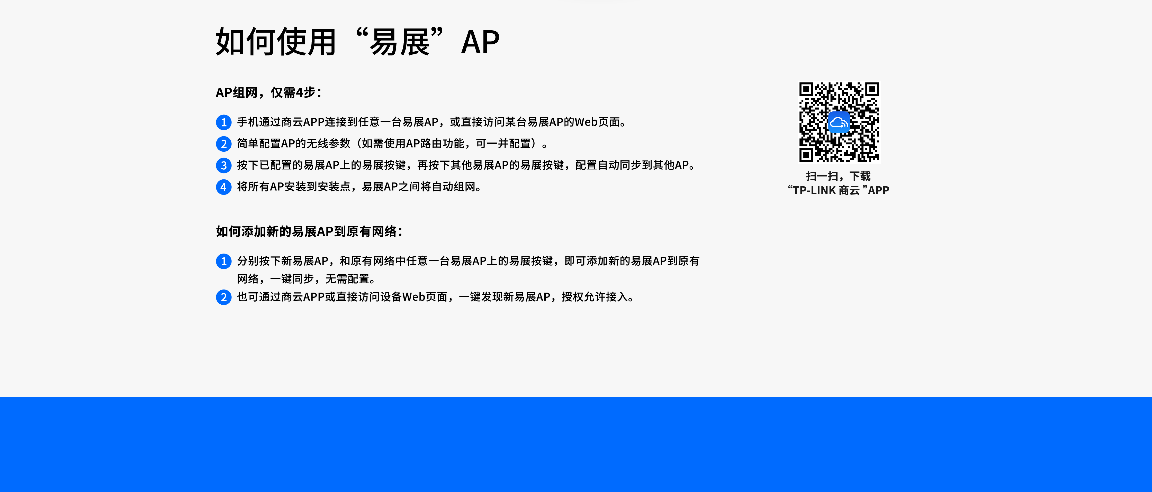 TP-LINK“易展”系列AP产品颠覆传统AP复杂的布线方式,通过TP-LINK Mesh
