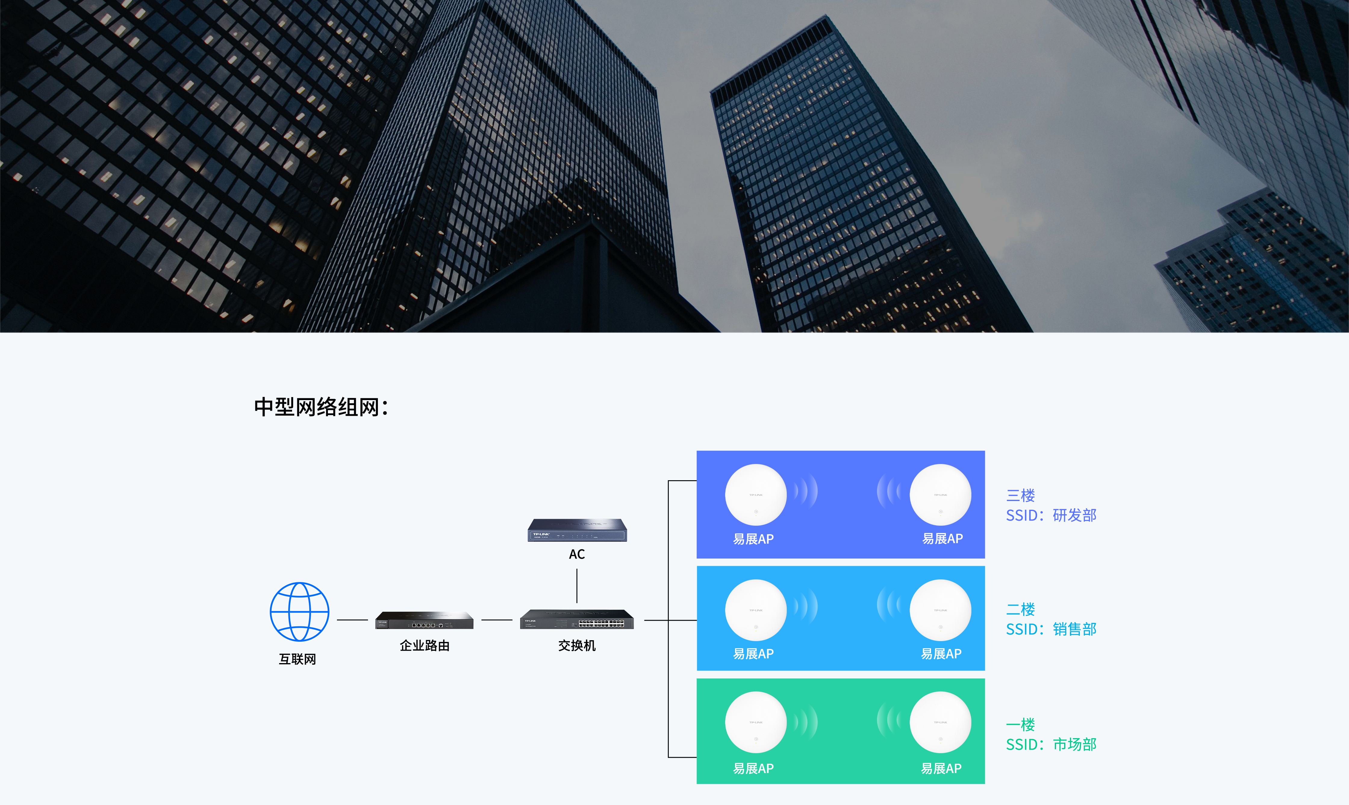 此外,易展AP在传统AP基础上新增路由功能,在一些中小型网络中,可以省去