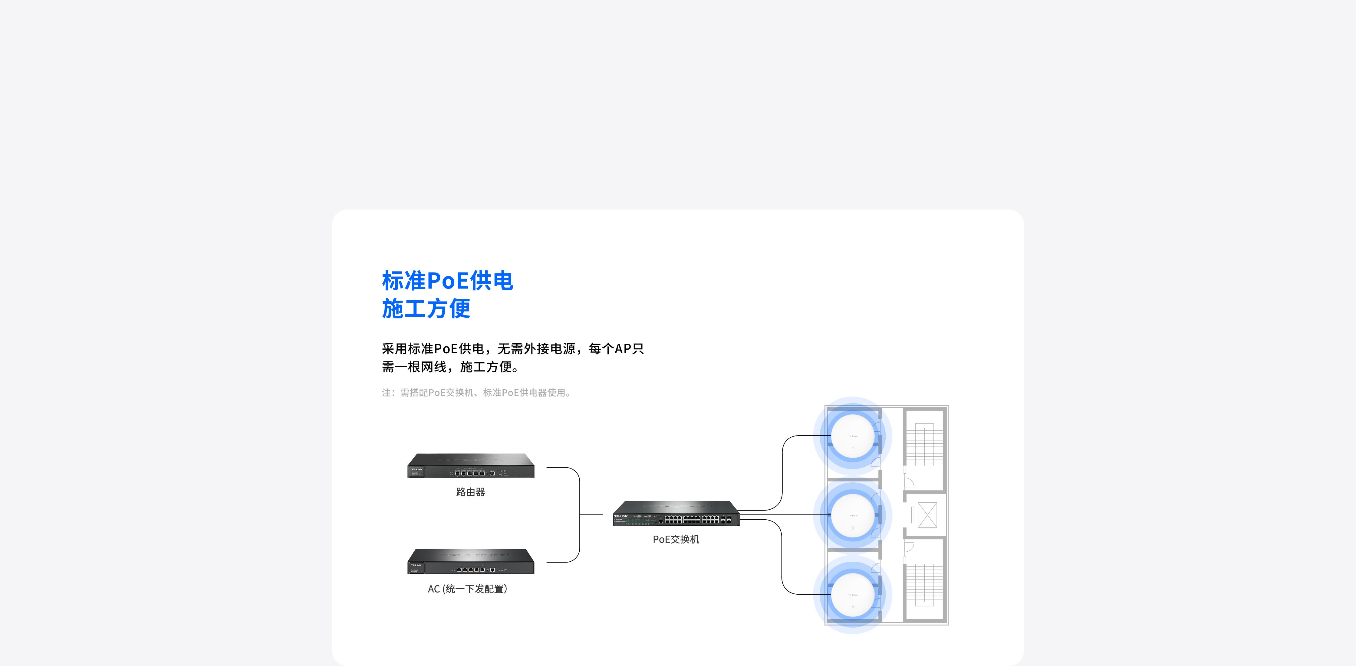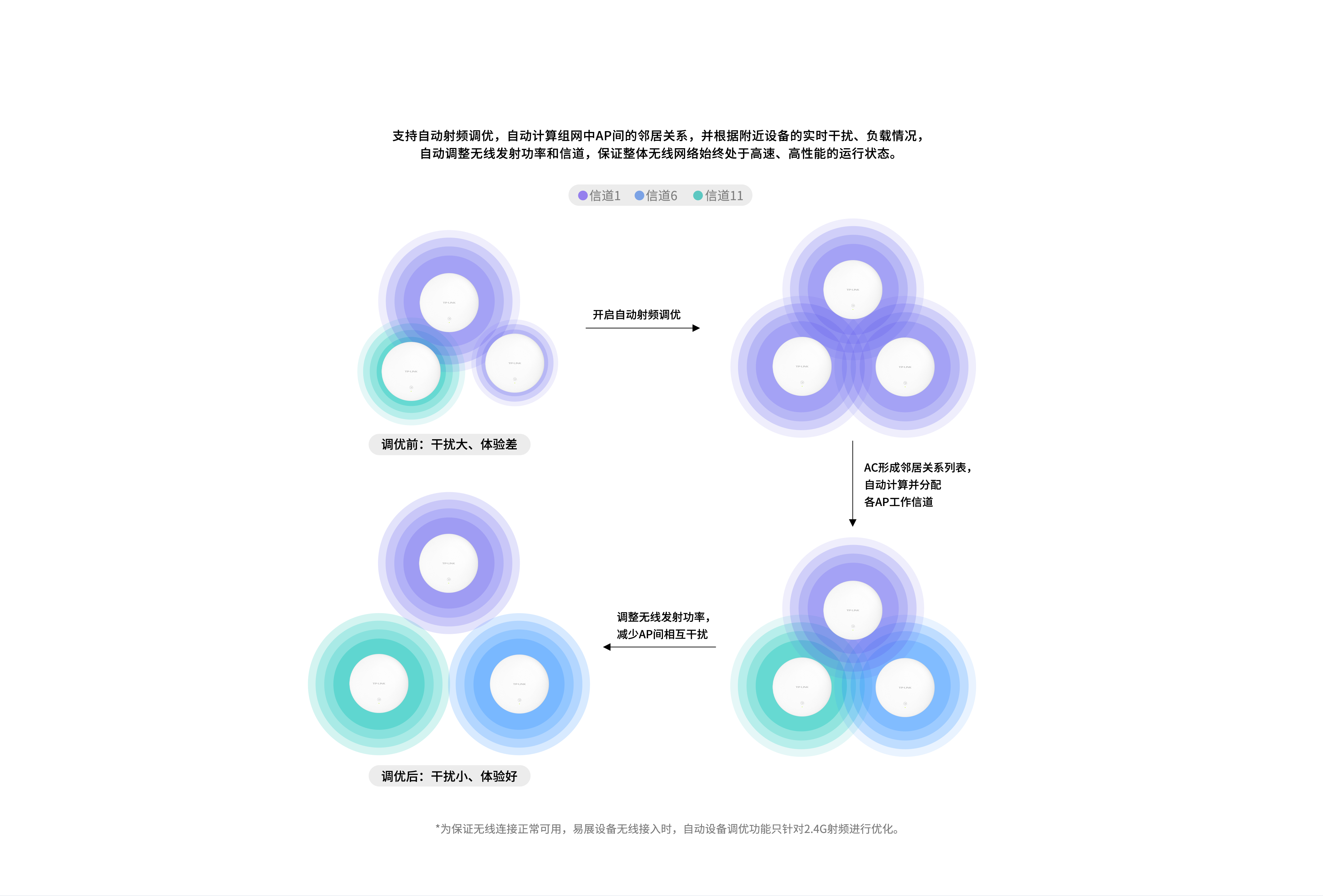 AP网络配置,即可自动同步到所有AP,让AP组网、管理更加省时、省力、省钱。