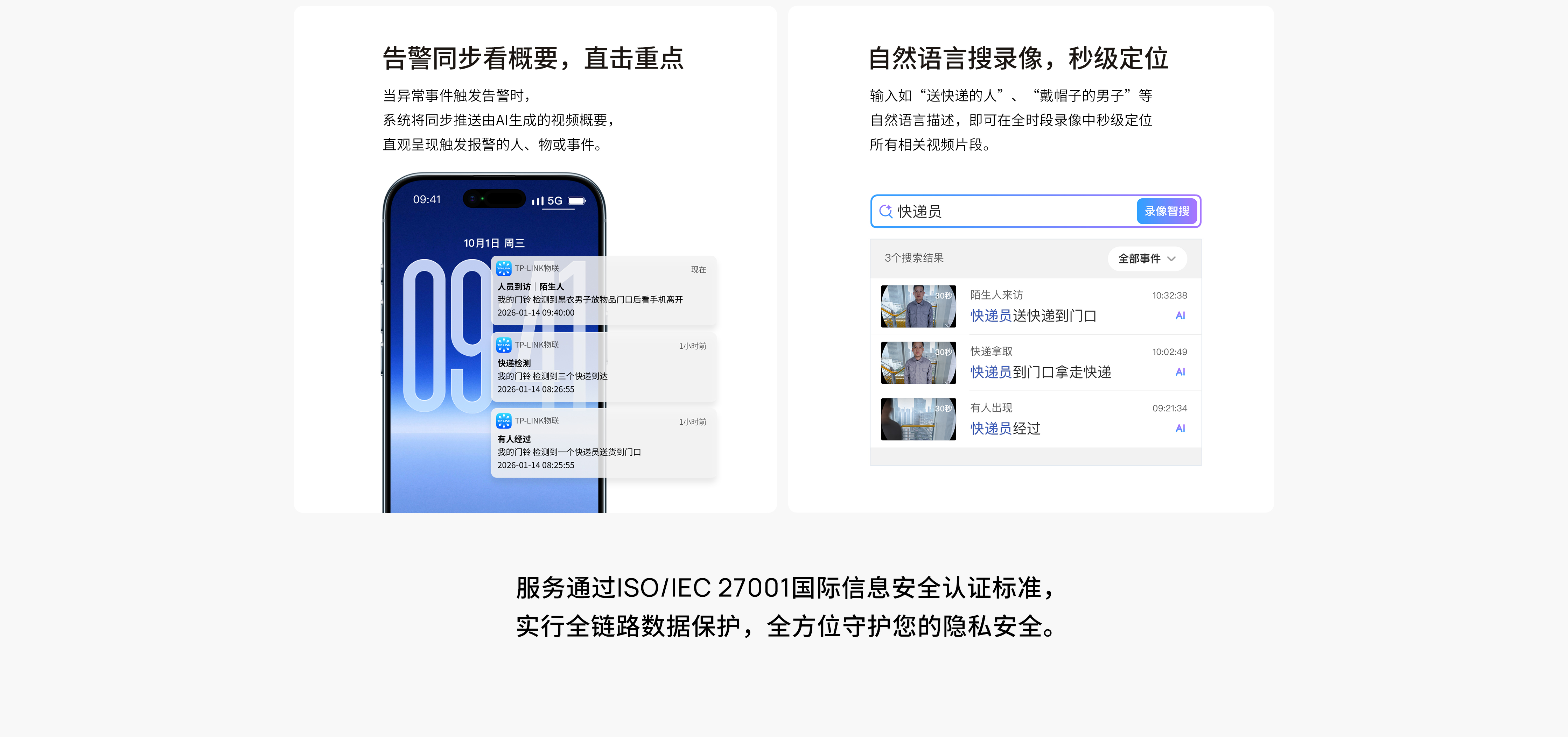 熟人来访有提醒,陌生人逗留告警,家门尽在掌握。