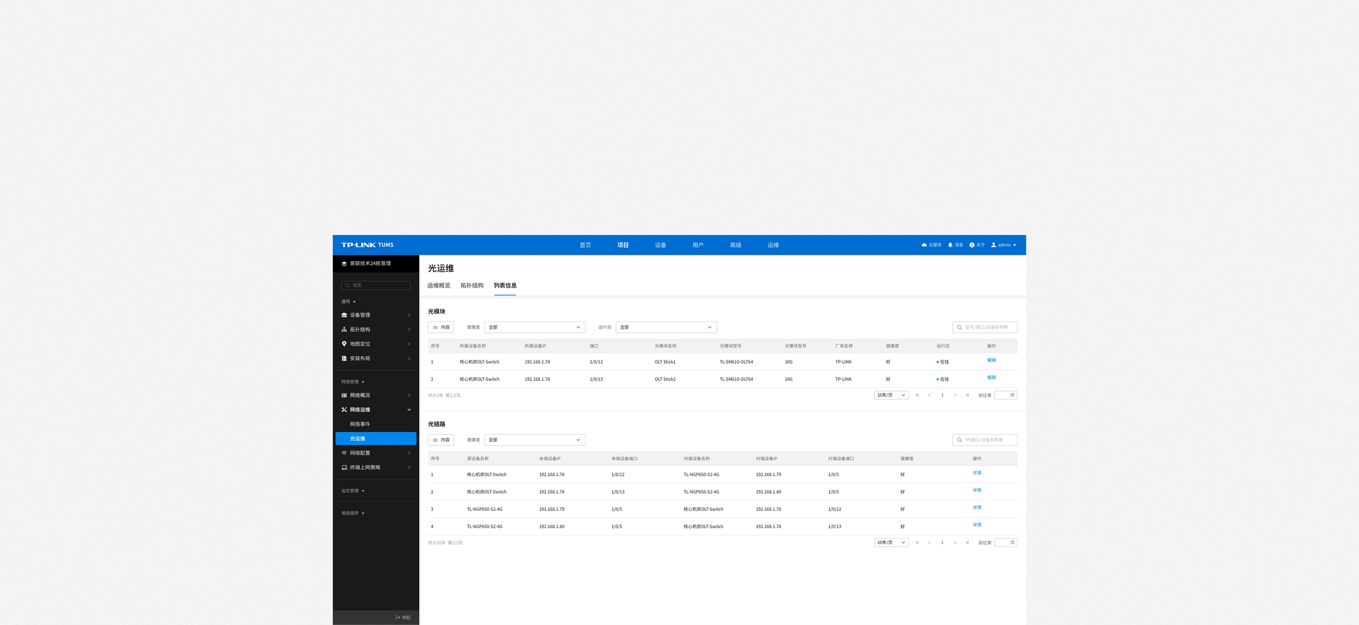 在设备层面,支持对光纤网络的全网设备进行集中运维管理,亦可实现对单一设备进行精细化管理。