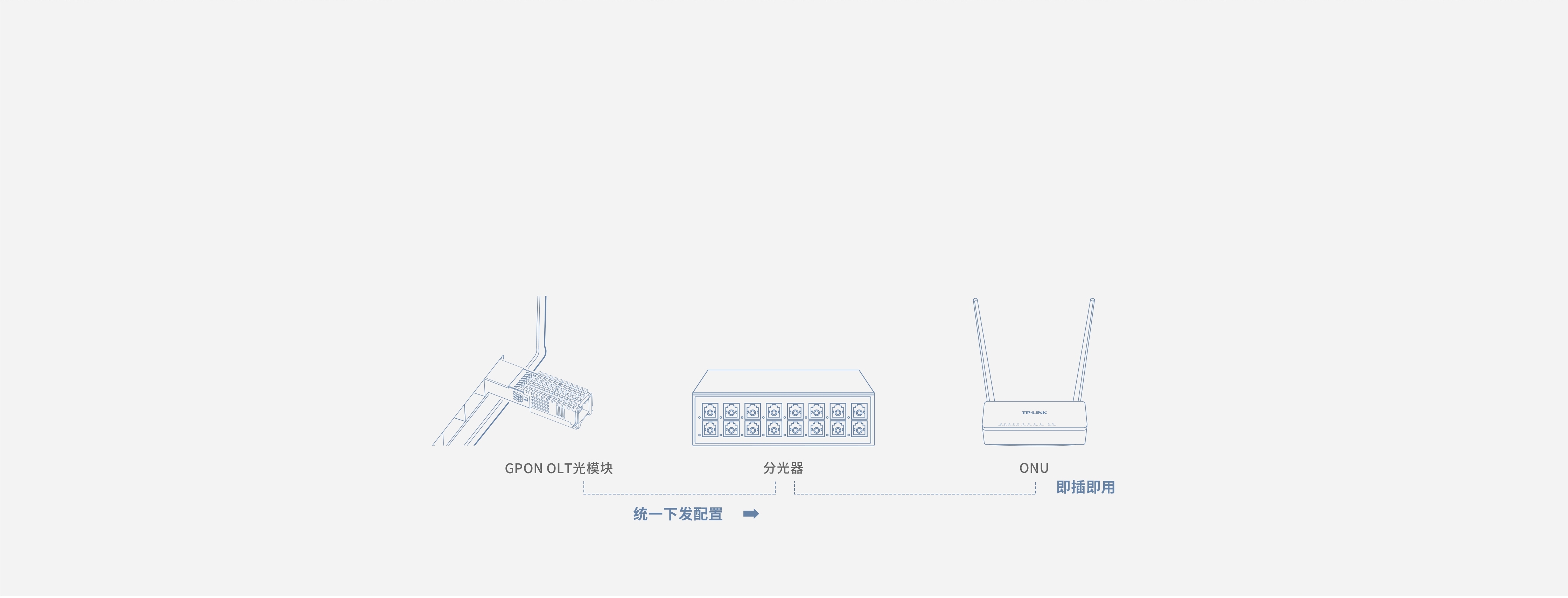 开局仅需配置管理设备,由OLT统一下发配置,ONU即插即用,无需现场调测。