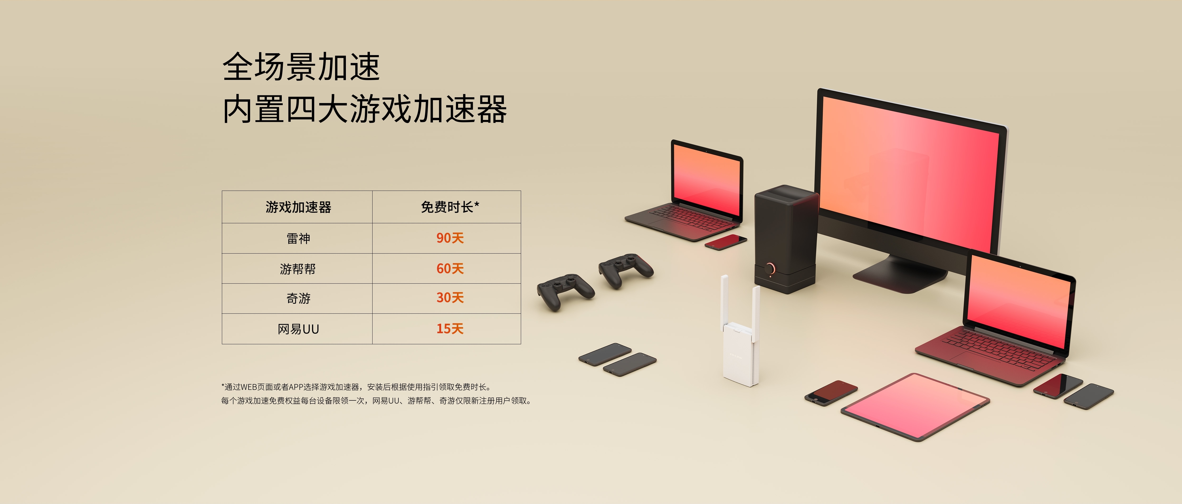 支持主机、PC端游戏全场景加速,支持PS、XBOX、Switch等设备,