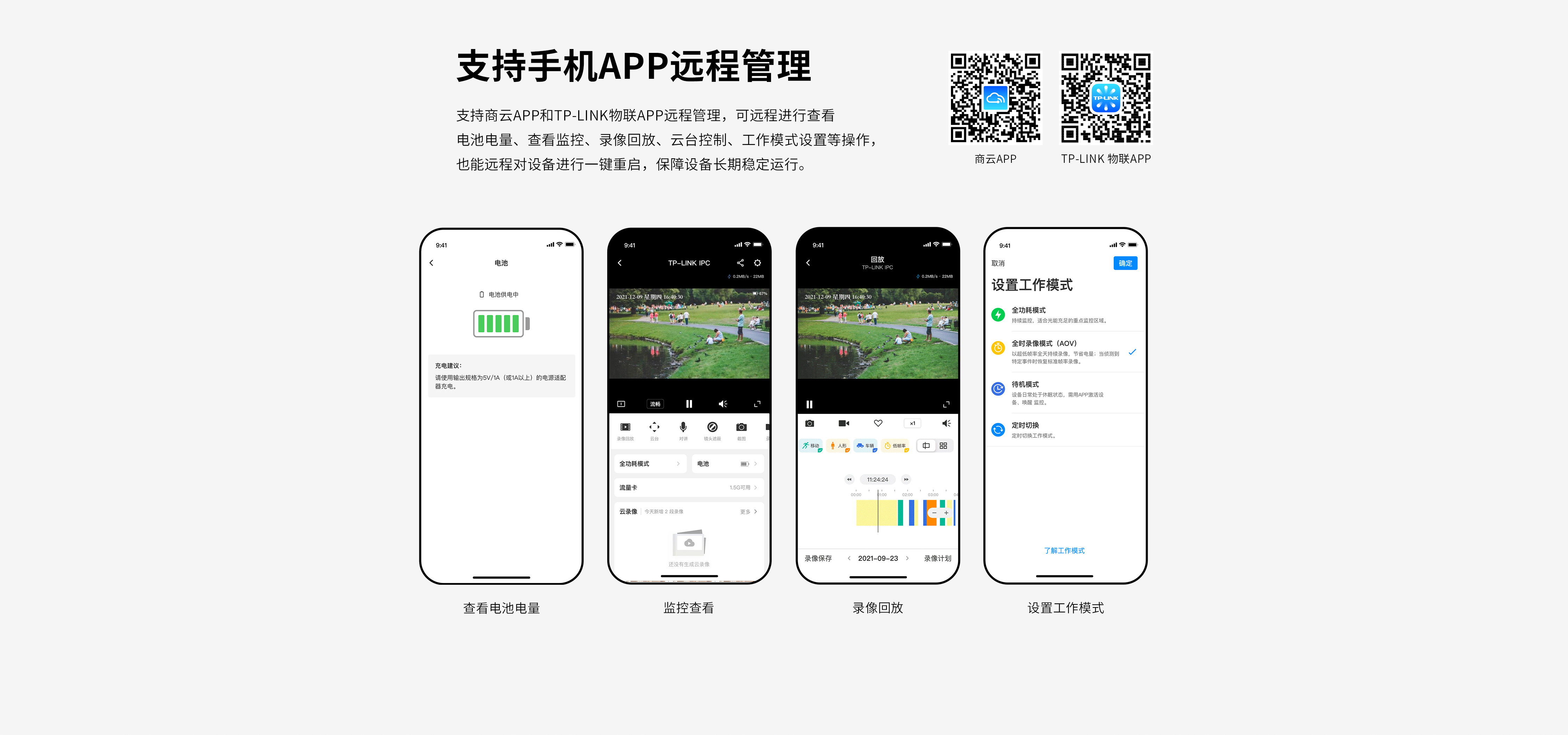 支持全时录像(AOV)模式,默认低帧率录像,识别人车后进入标准帧率模式,